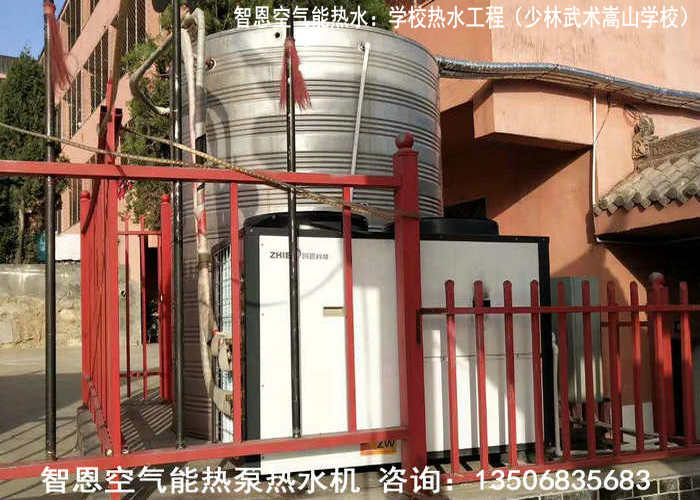 上海浦東新區某工地工人生活熱水工程,采用智恩空氣能熱泵熱水機組5匹機,3噸保溫水箱。