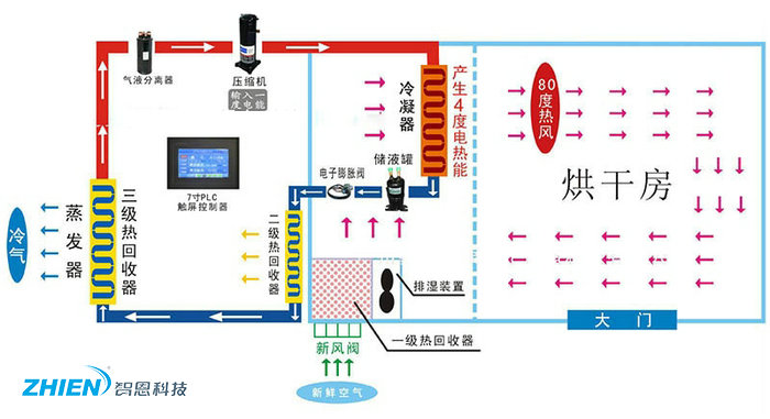 空氣能熱泵烘干系統包含:烘干房、烘干箱、空氣能熱泵烘干機(金銀花烘干機、肉制品烘干機、食用菌烘干機、海產品烘干機、食品烘干機、木材烘干機、臘腸烘干機、臘肉烘干機、辣椒烘干機、紙筒烘干機、石膏線烘干機等等)。