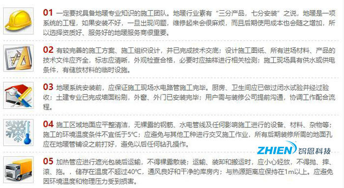 地暖安裝施工規(guī)范 地板采暖是一項(xiàng)技術(shù)含量高、施工標(biāo)準(zhǔn)高的系統(tǒng)工程,任何一個環(huán)節(jié)的疏忽不但可能降低地暖…